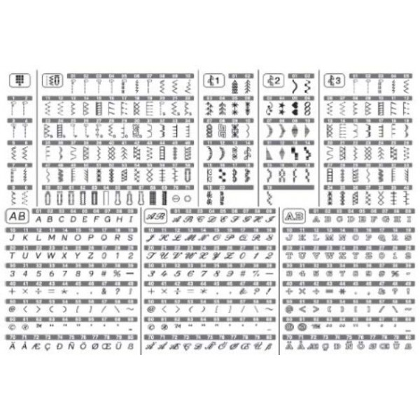 - 150 punti, compresi 10 tipi di asole e 4 font