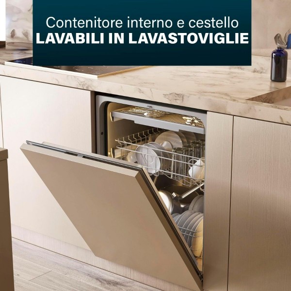La scocca in acciaio inox e i componenti rimovibili rendono questa friggitrice non solo durevole, ma anche molto facile da usare. Il cestello è dotato di un manico staccabile per una facile conservazione, e il sistema di gestione del cavo integrato mantiene il tuo piano di lavoro in ordine. Il sistema di filtraggio e la zona fredda garantiscono che la tua cucina rimanga fresca durante e dopo la frittura.