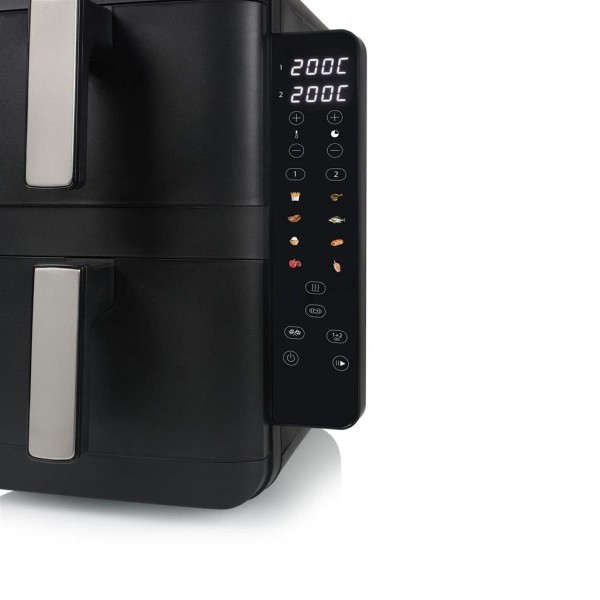 FR-9074 Stack Airfryer 9L, un rivoluzionario elettrodomestico da cucina che porta la frittura ad aria ad un livello superiore. Questa air fryer digitale con touchscreen LED ha un motore da 2400W e una capienza di 9L, che ti permette di cucinare due piatti diversi contemporaneamente grazie al suo design unico a doppio cestello.
