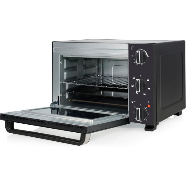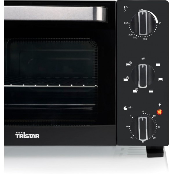 Il Forno a Convezione Tristar è dotato di una porta in vetro doppio, garantendo che il calore rimanga all'interno per una cottura efficiente mantenendo l'esterno fresco al tatto. Il forno dispone anche di luci di indicazione di alimentazione e maniglie per rimuovere facilmente la teglia da forno e la griglia di cottura, rendendolo sicuro e comodo da usare.