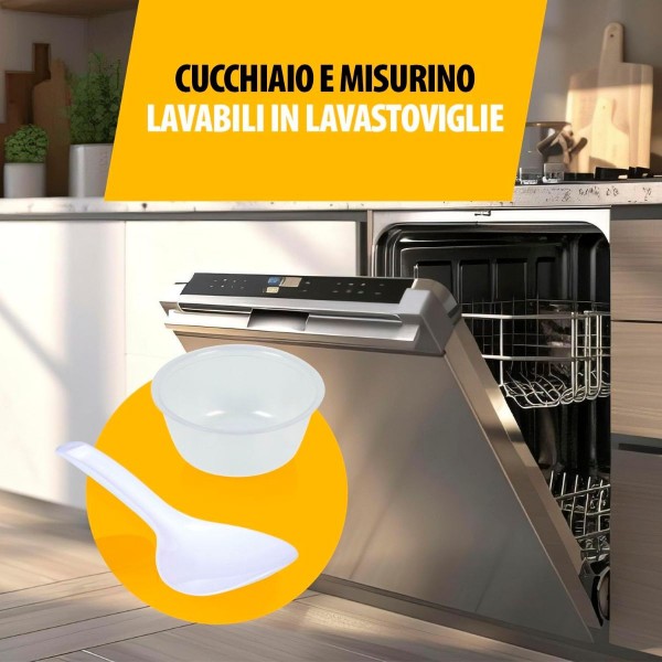 Il corpo in acciaio inox si adatta perfettamente a qualsiasi cucina moderna. Nonostante l’ampia capacità, il design resta compatto e salvaspazio.